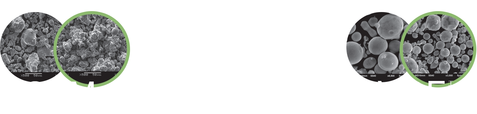 VOF 工藝粉末與常規(guī)水霧化粉末 SEM