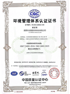 環(huán)境管理體系認證證書